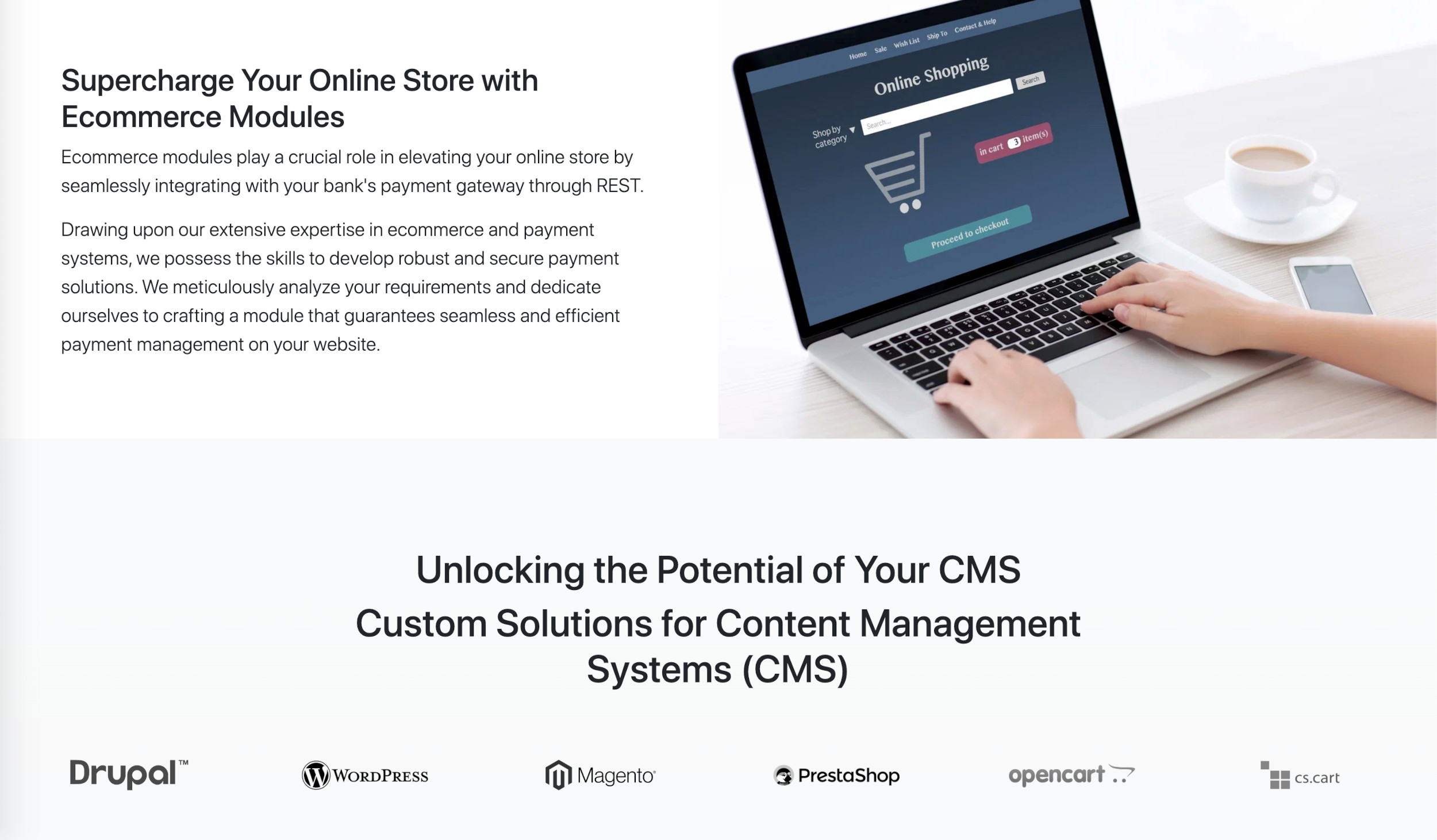 Ecommerce modules play a crucial role in elevating your online store by seamlessly integrating with your bank's payment gateway through REST.